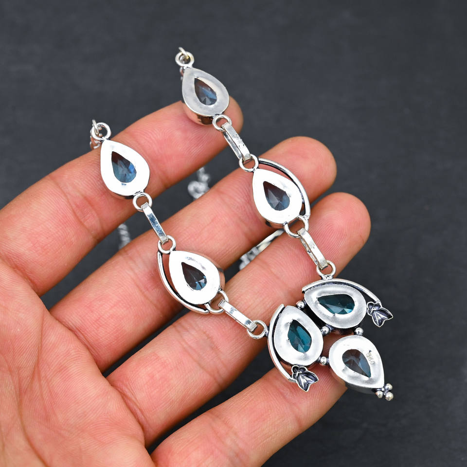 Collier de luxe pour femme, fait main sur mesure, en argent sterling, avec topaze bleue de laboratoire et perle d'eau douce en forme de poire, 18 pouces, cadeau de mariage