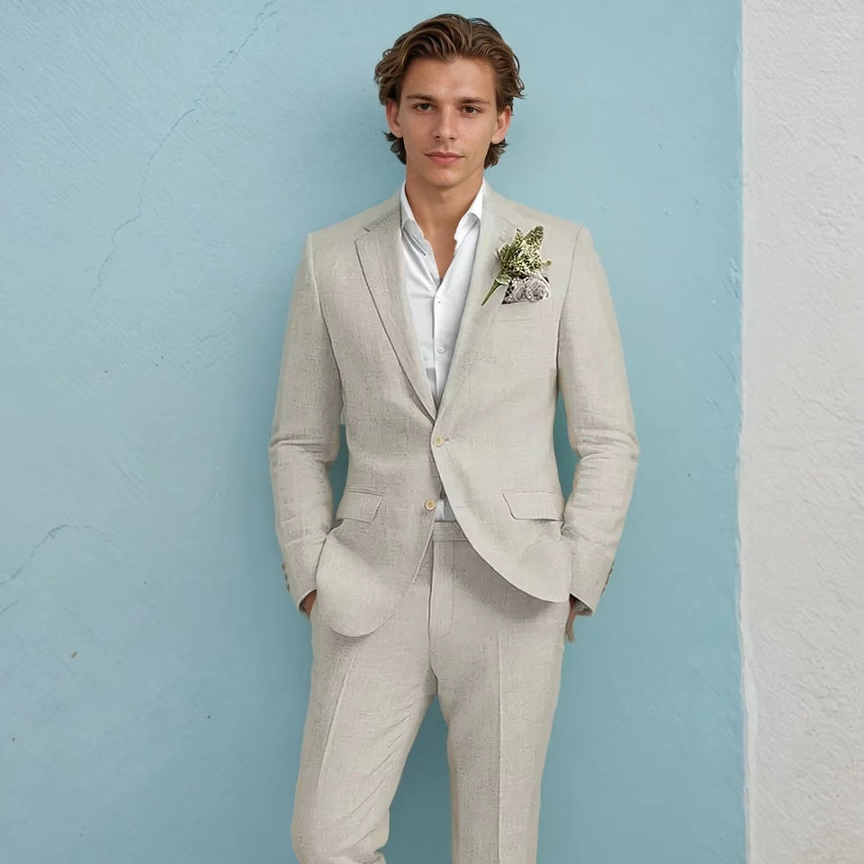 Costume en lin formel personnalisé fait à la main pour hommes costume de mode homme tissu de lin costume de smoking formel pour hommes