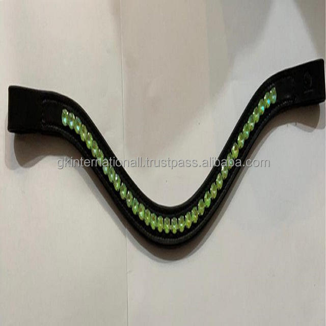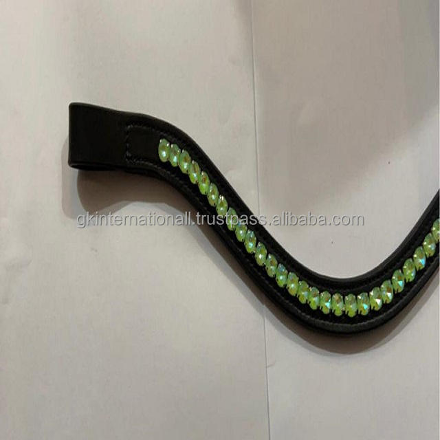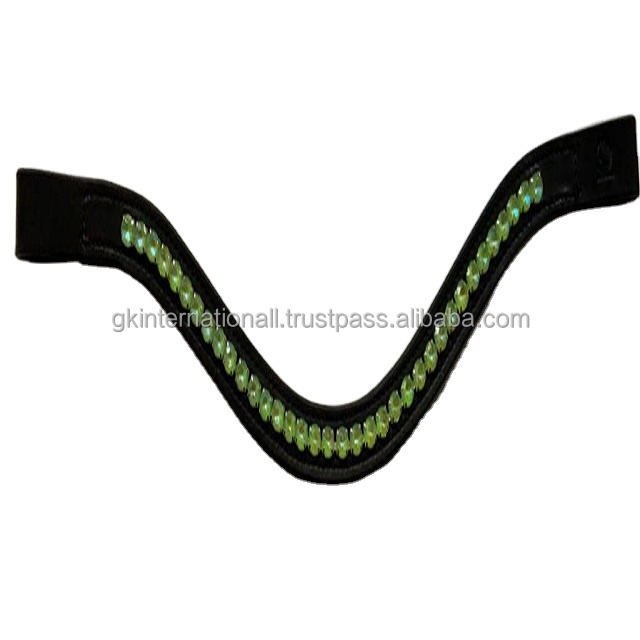 Équipement de cheval personnalisé fait à la main canal vide noir en cuir véritable bande de sourcil de cheval incrustée cristaux de verre vert clair bling