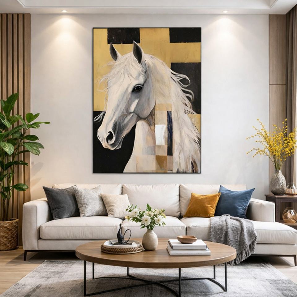 Peinture à l'huile réaliste originale faite à la main sur mesure, motif cheval, pour décoration murale de maison et d'hôtel, style cadeau