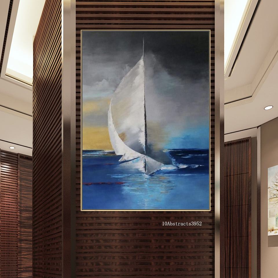 Peinture Paysagère de Voilier en Bord de Mer Personnalisée Faite à la Main à partir de Photos Abstraite avec Peinture Acrylique