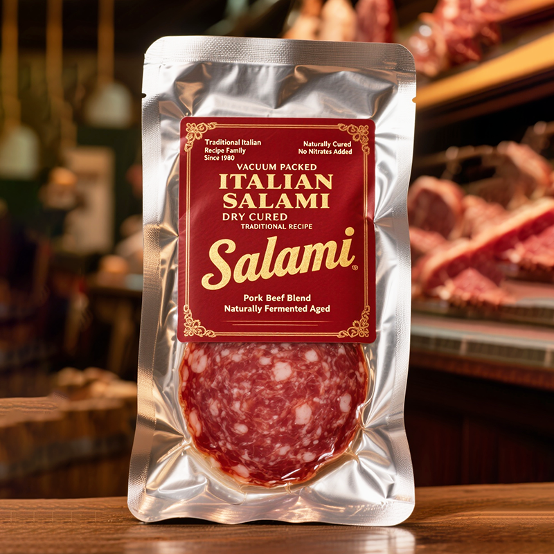 Sac sous vide en argent thermoscellant personnalisé pour saucisse de salami italien
