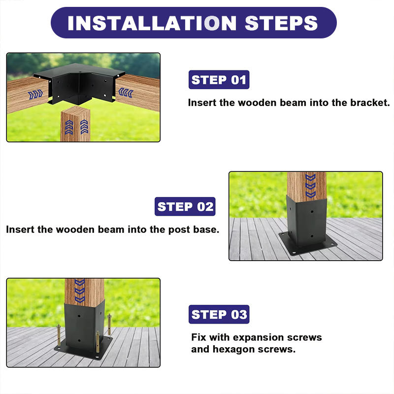 Kit de supports de pergola en métal robuste à 3 voies, personnalisé, installation facile, support de pergola 4x4 pour cour et patio