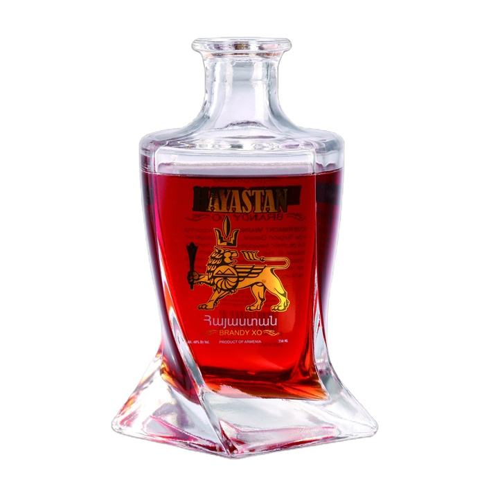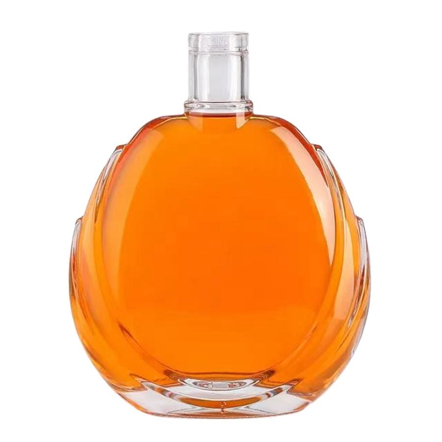 Bouteille en verre plate de haute qualité personnalisée de 300/500/700 ml, surface gravée à l'acide, forme spéciale, vin, whisky, brandy, tequila, gin, liqueur