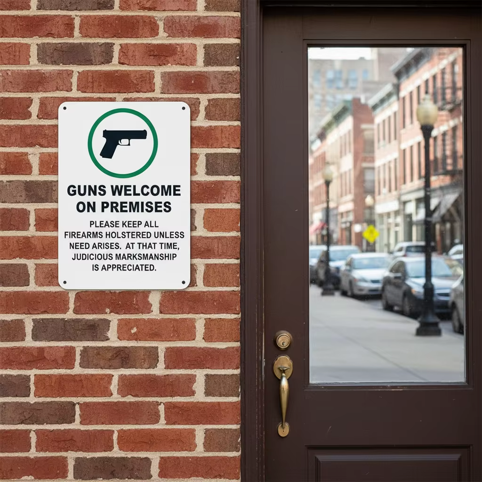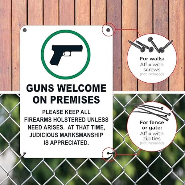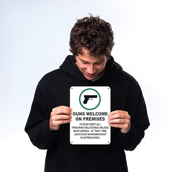 Panneau de bienvenue personnalisé de haute qualité en aluminium antirouille de 7 x 10 pouces pour les lieux où les armes sont autorisées