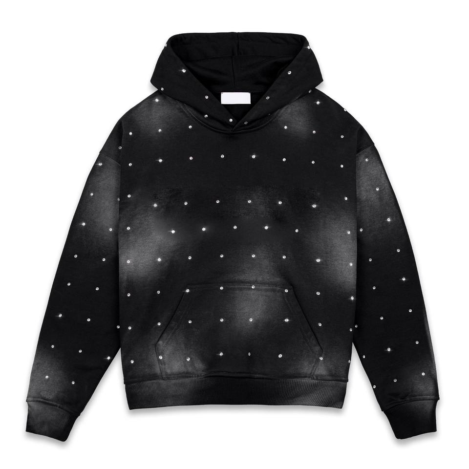 Sweat à capuche personnalisé de haute qualité avec un design personnalisé, effet délavé au soleil, avec strass, respirant, 100% coton, sweat à capuche avec strass