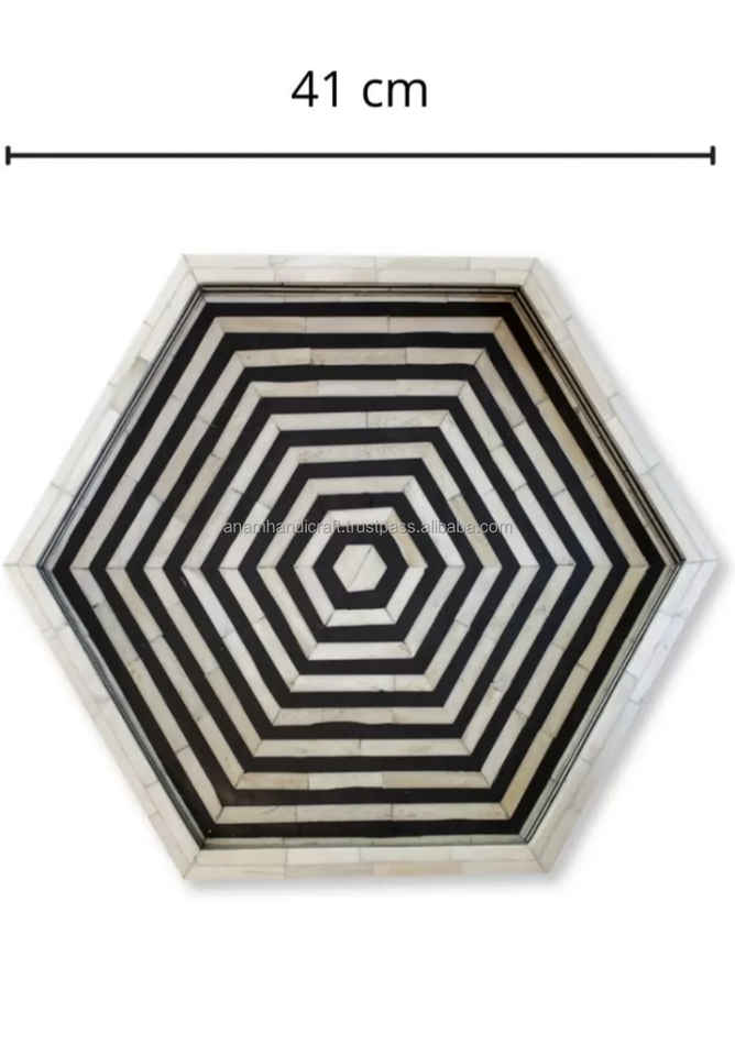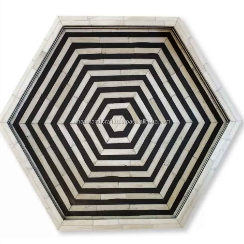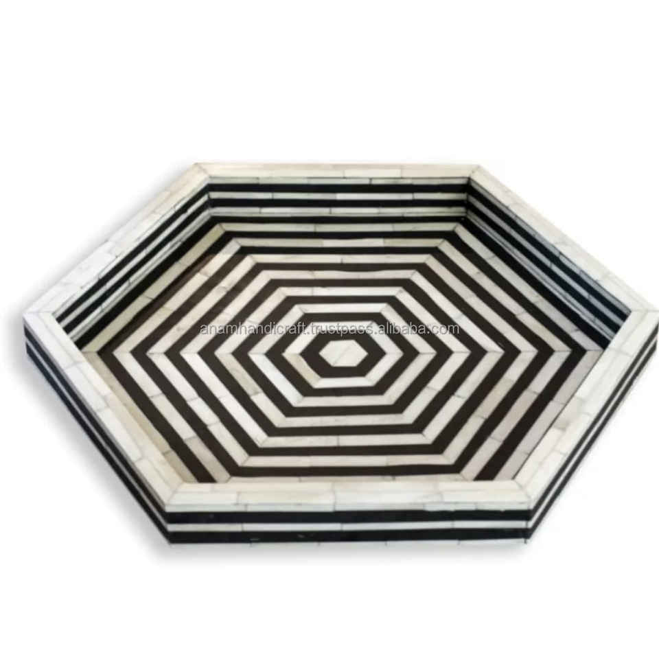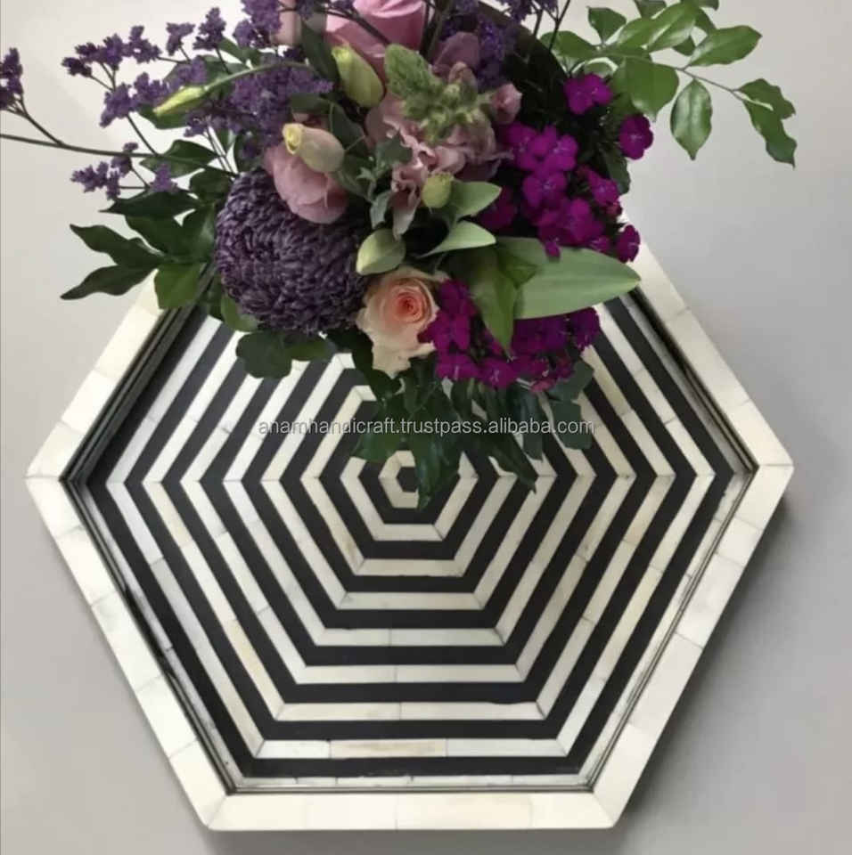 Personnalisé de haute qualité fabriqué à la main en bois naturel incrustation d'os plateau de service rond plaqué pour la maison Restaurants hôtels directement