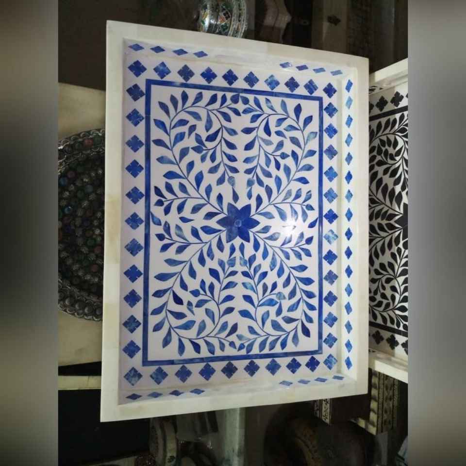 Personnalisé de haute qualité fabriqué à la main en bois naturel Floral vadrouille os incrustation plateau de service pour la maison Restaurants hôtel pour le Ramadan inde