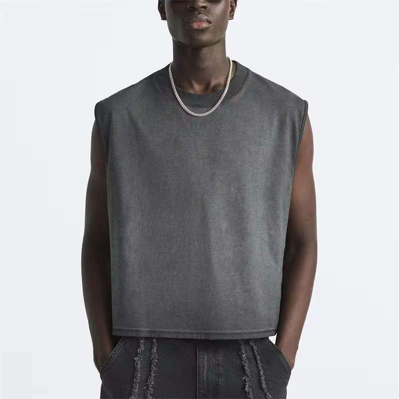 Débardeurs de sport personnalisés de haute qualité pour hommes, coupe ample et courte, noirs, sans manches, pour la musculation