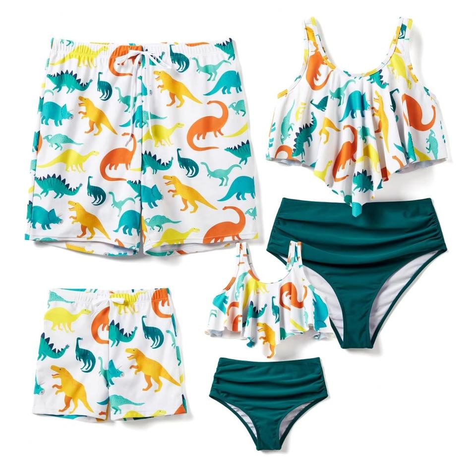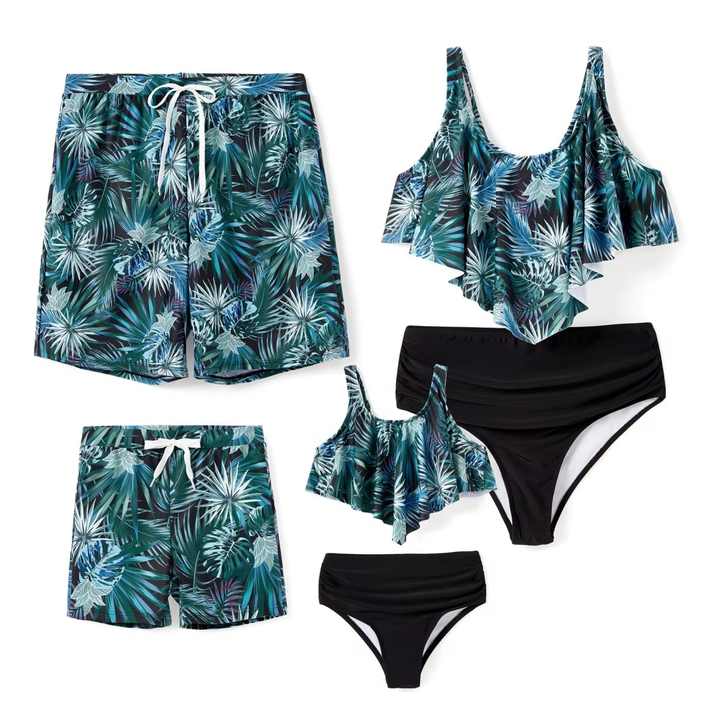 Maillot de bain thong de luxe personnalisé de haute qualité, imprimé feuilles, pour femme, collection assortie pour la famille