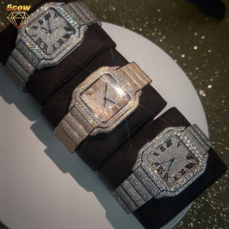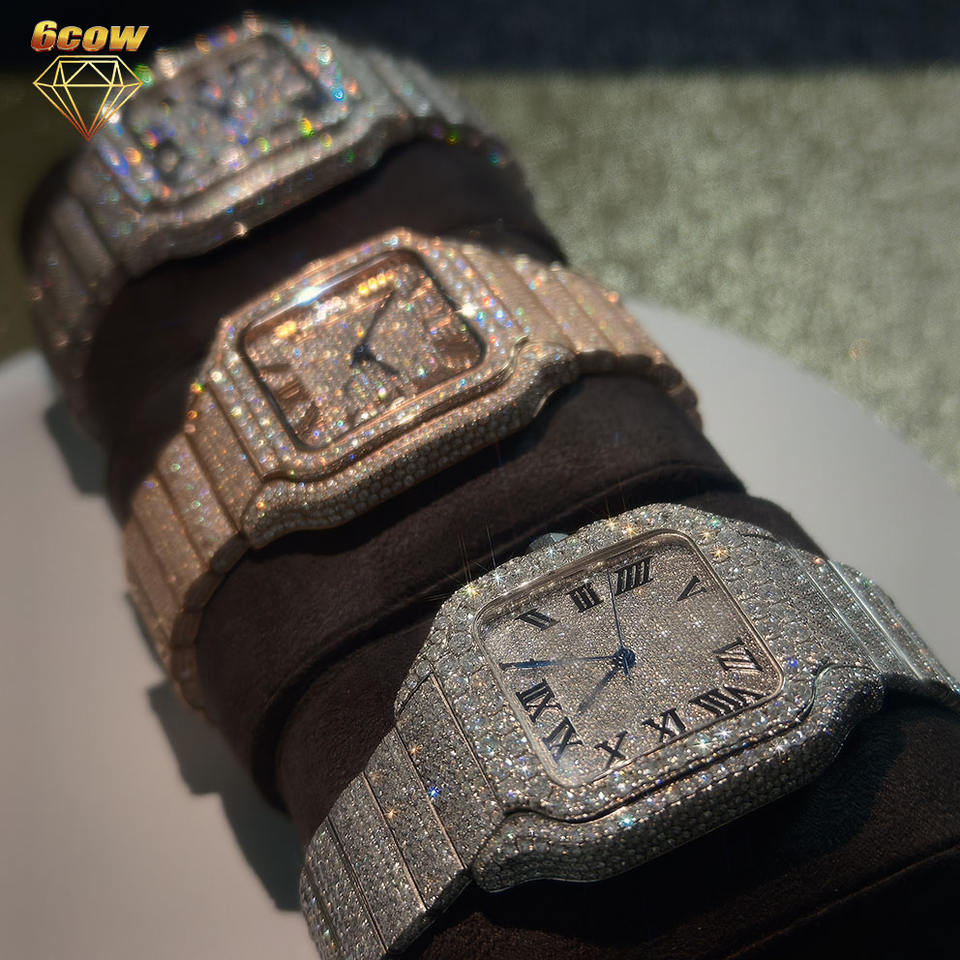 Montre personnalisée de luxe pour homme, mécanique, boîtier carré, sertie de moissanite VVS effet cristal de glace, style Cartier, 39 mm, Hip Hop