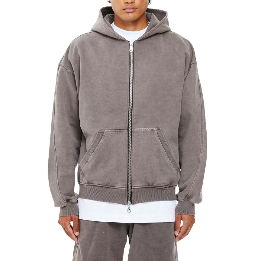 Sweat-shirts à fermeture éclair pour hommes de haute qualité personnalisés, lavés à l'acide, surdimensionnés, épaules tombantes, 100% coton molletonné, sweat-shirts à fermeture éclair décontractés pour hommes