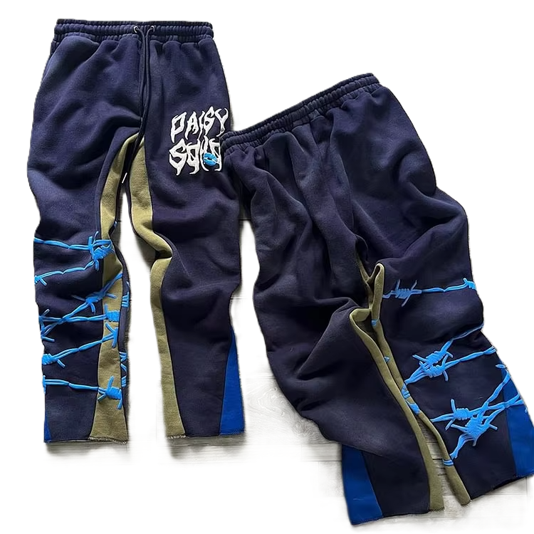 Pantalon de survêtement personnalisé de haute qualité avec motif imprimé en relief, pour hommes et femmes, OEM, bicolore, coupe large, respirant, été-printemps