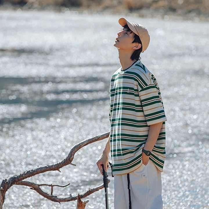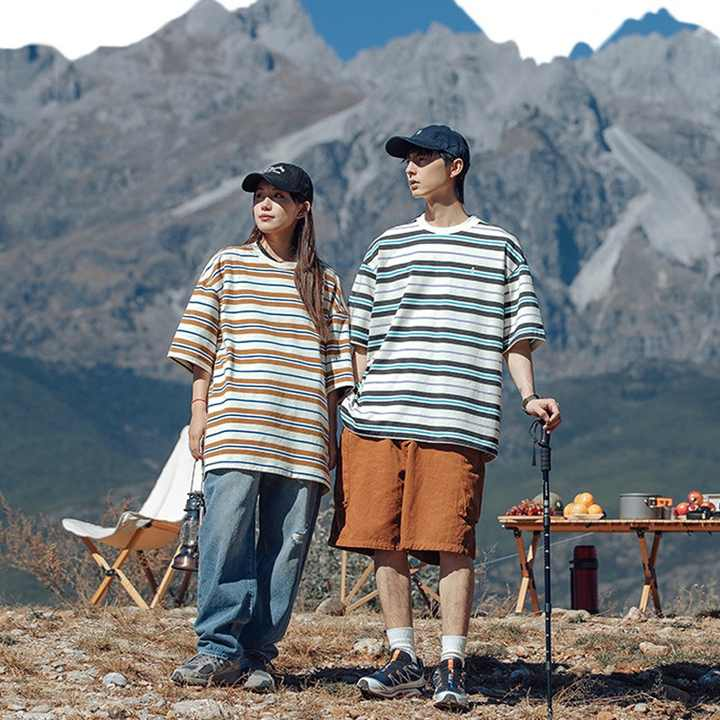 Personnalisé de haute qualité été Vintage contraste rayé hommes T-shirt lâche mince brodé Couple à manches courtes