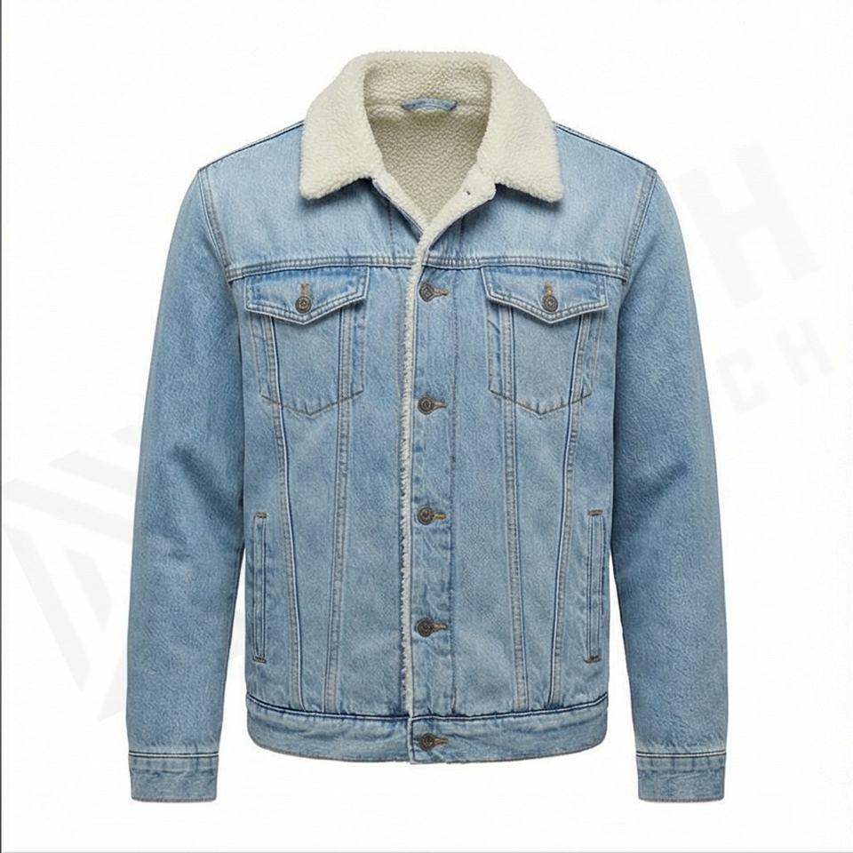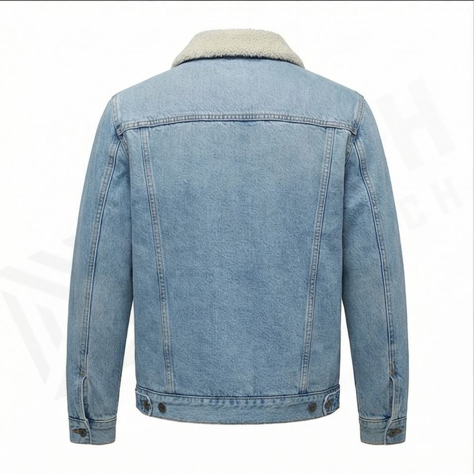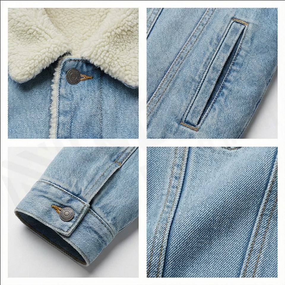 Veste denim d'hiver personnalisée de haute qualité OEM classique en laine unisexe avec logo à l'avant pour hommes