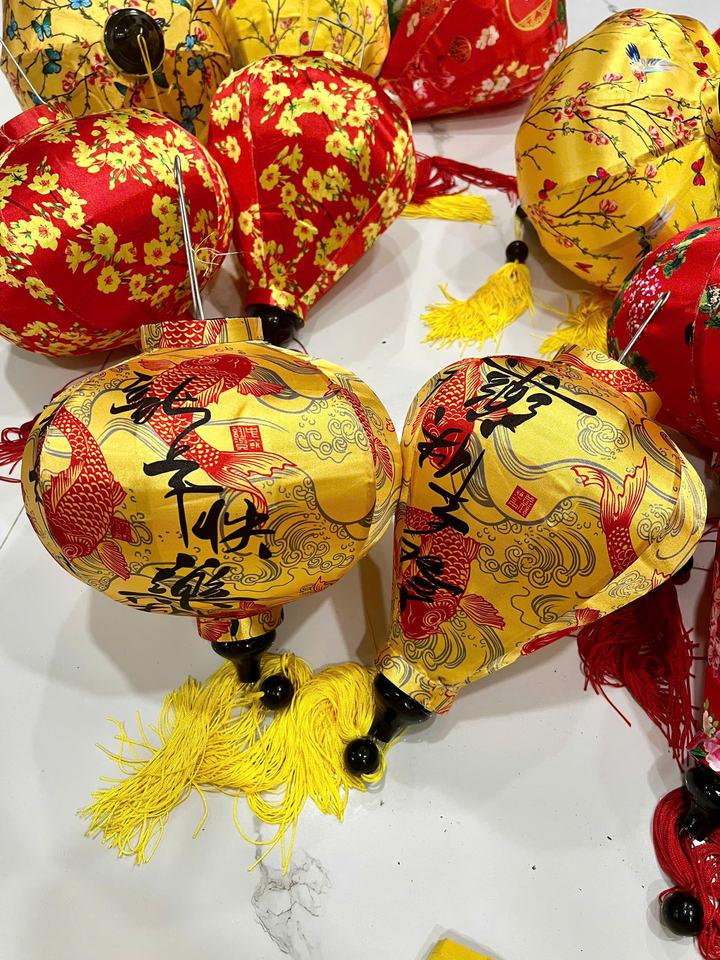 Lanterne en soie de Hoi An personnalisée, couleur rouge, forme d'ail, lanterne en soie vietnamienne avec motif de vagues et de poissons koï, lumière suspendue imperméable
