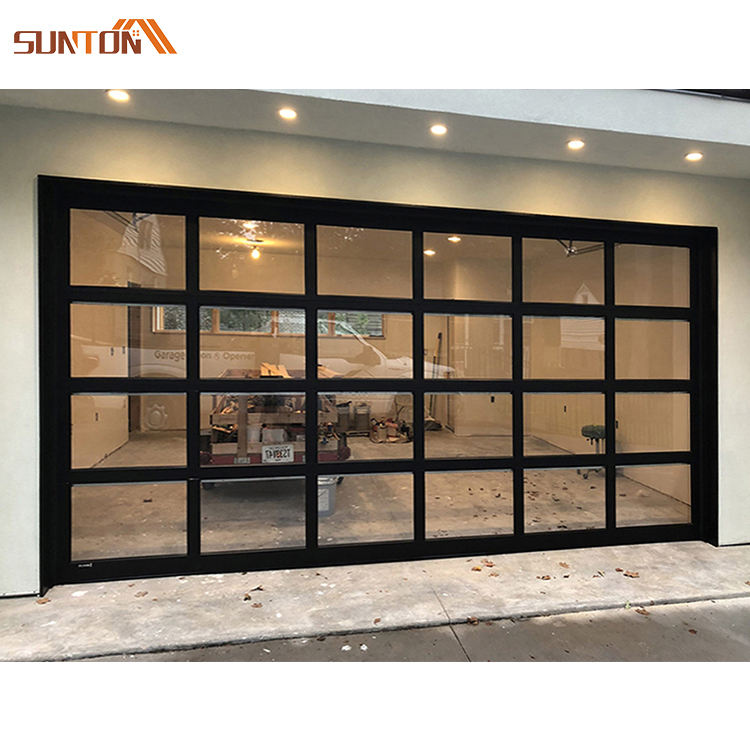 Customized Home Commercial Modern Motorized Auto Aluminum Frame Full View Transparent clear Glass Panels Garage Door with Motor