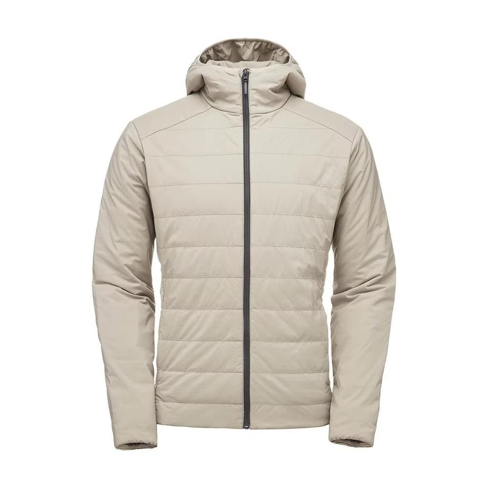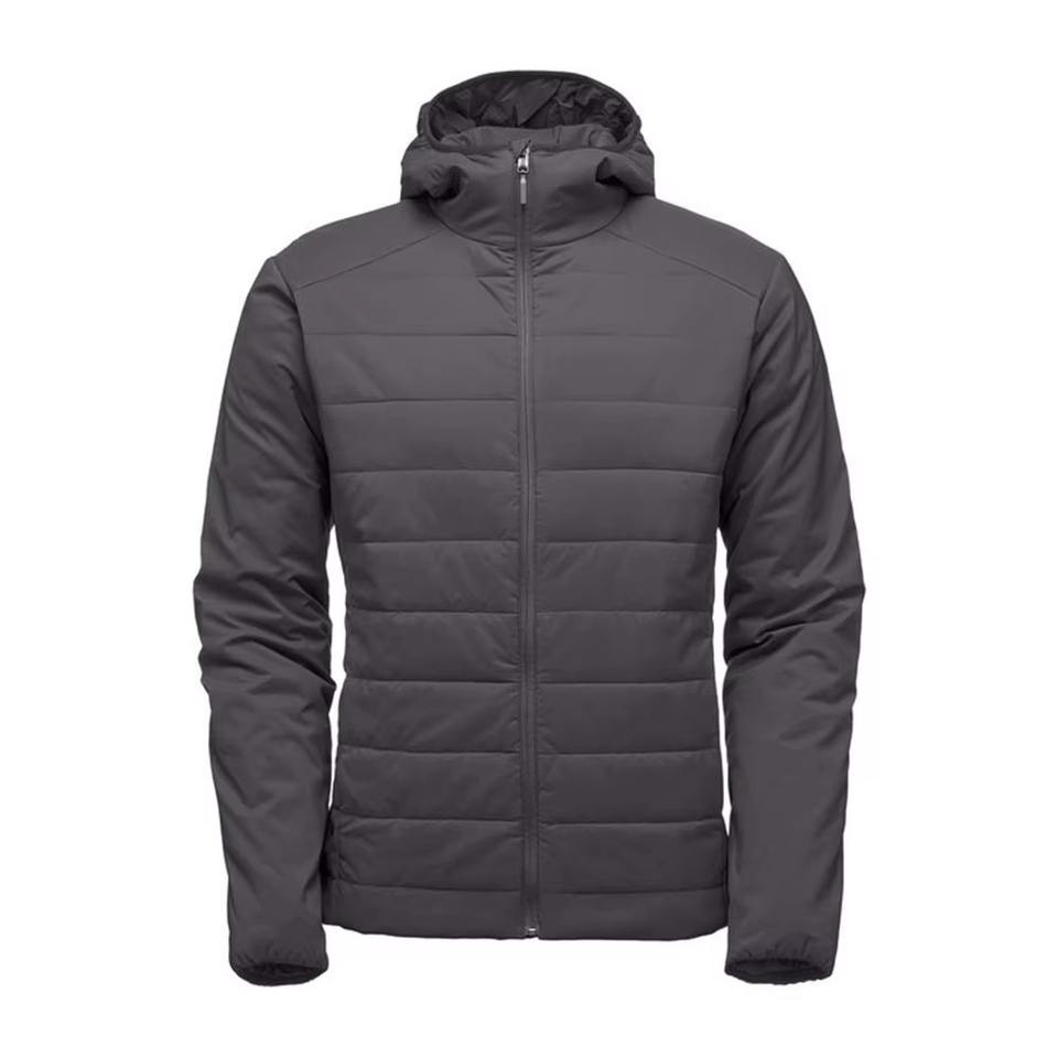 Veste d'hiver pour homme à capuche personnalisée, fermeture éclair, imperméable, respirante, motif uni, rembourrage en polyester, coupe-vent, chaude, pour les grandes tailles
