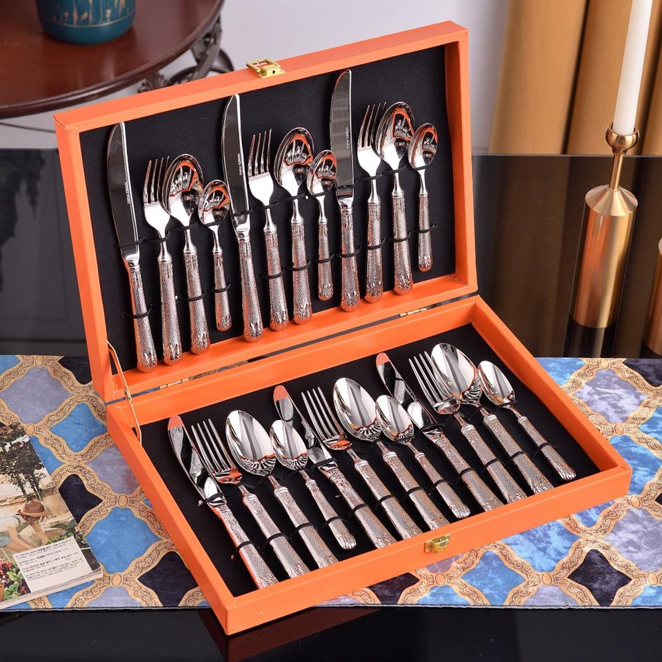 Bagues personnalisées de style européen à forte valeur ajoutée Ensemble de couverts en acier inoxydable argenté Ensemble de couverts en acier inoxydable 304