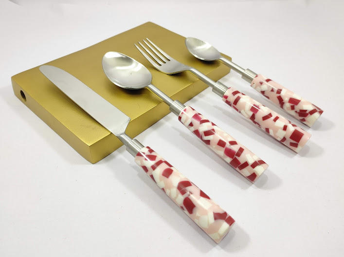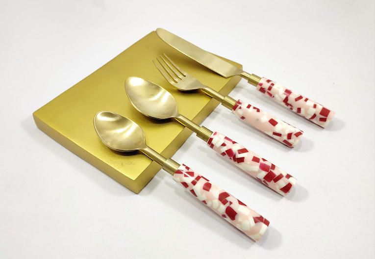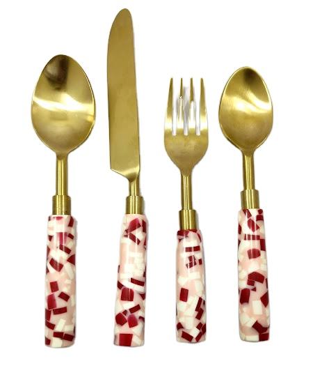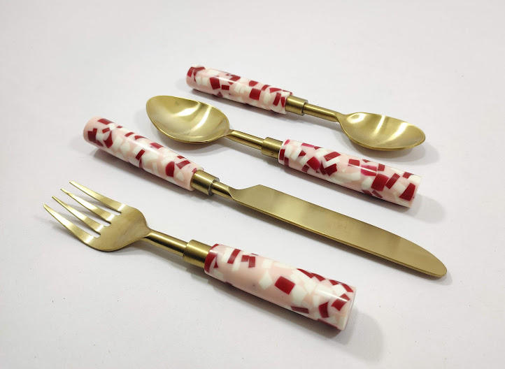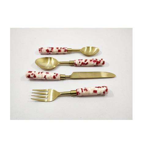 Couverts de Restaurant européen en laiton Antique, personnalisé, offre spéciale, ensemble de luxe en métal avec poignée en résine, 4 pièces