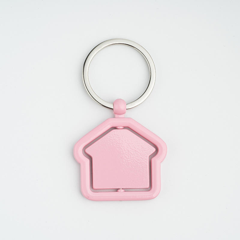 Porte-clés isolés en alliage de zinc en forme de maison personnalisée avec impression laser-cadeau de promotion de la Chine