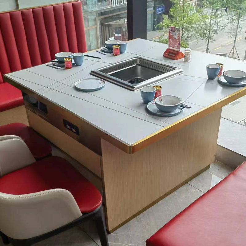 Marmite chaude pour barbecue intérieur personnalisé table de barbecue table en pierre frittée avec barbecue barbecue marmite table à manger intégrée