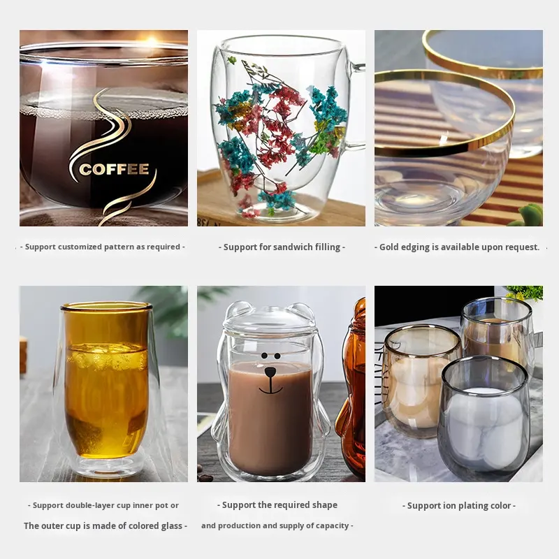 Pot de presse français en verre isolé personnalisé Machine à café double couche à haute teneur en borosilicate résistant à la chaleur Partage de filtres ménagers