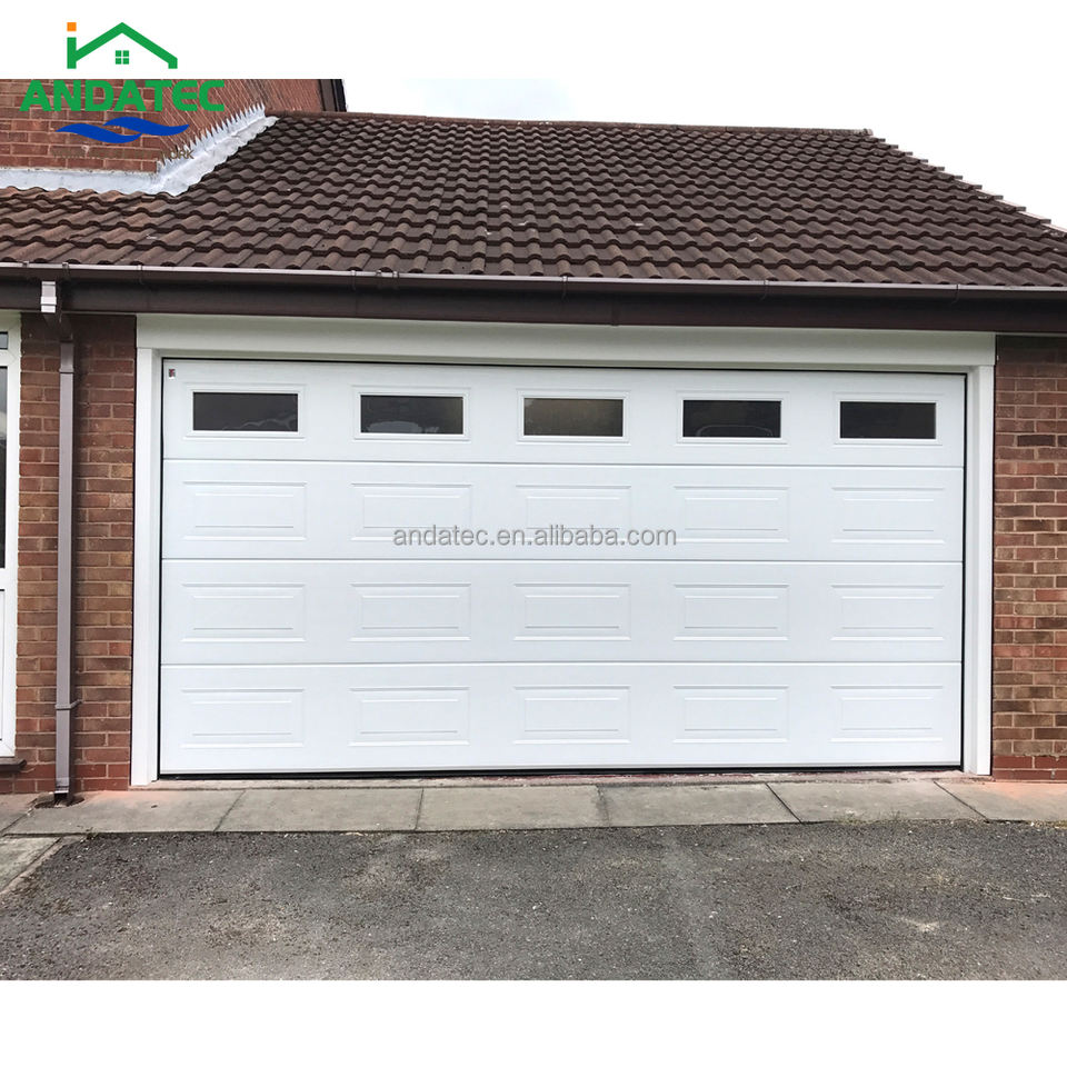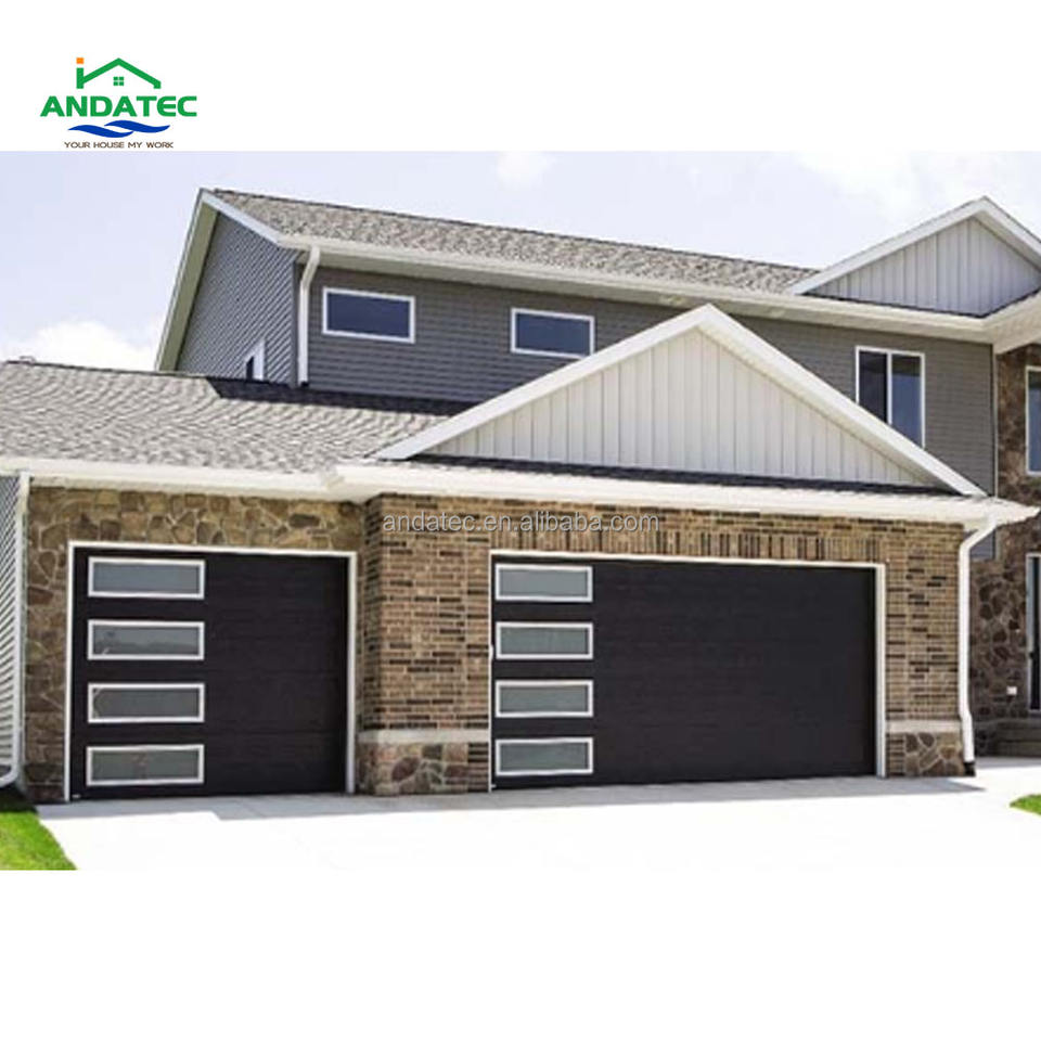 Porte de garage sectionnelle automatique isolante personnalisée 9x9 12x12 16x7 avec fenêtres en verre perspective