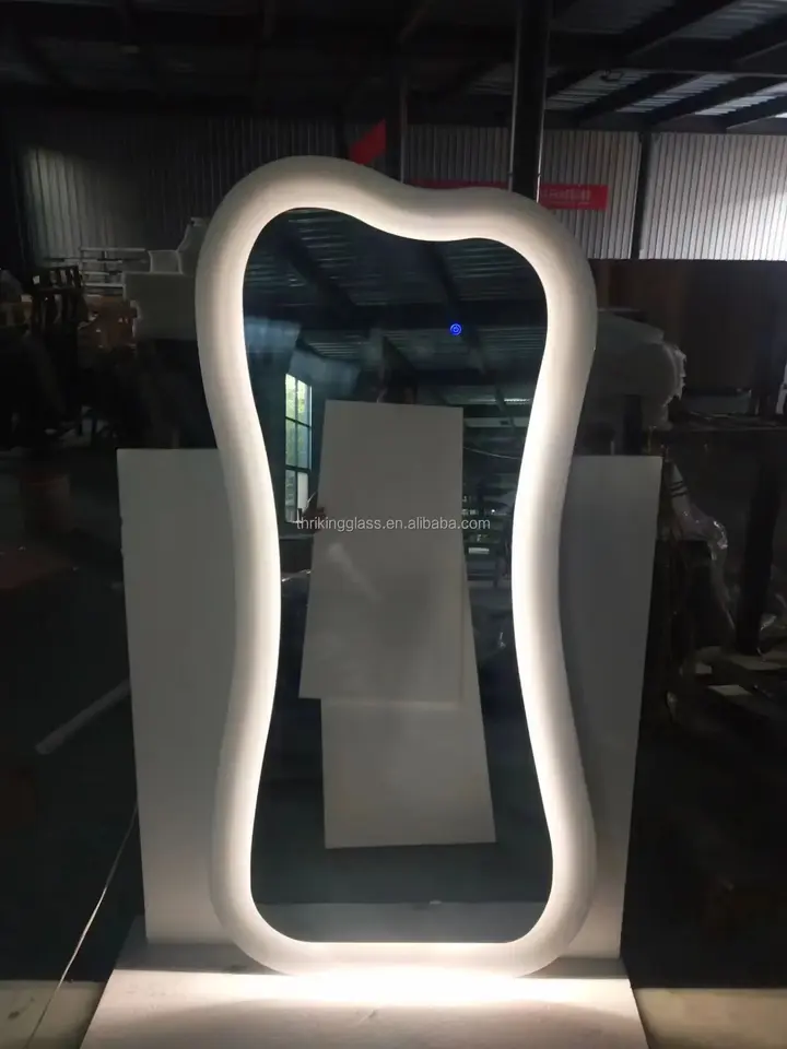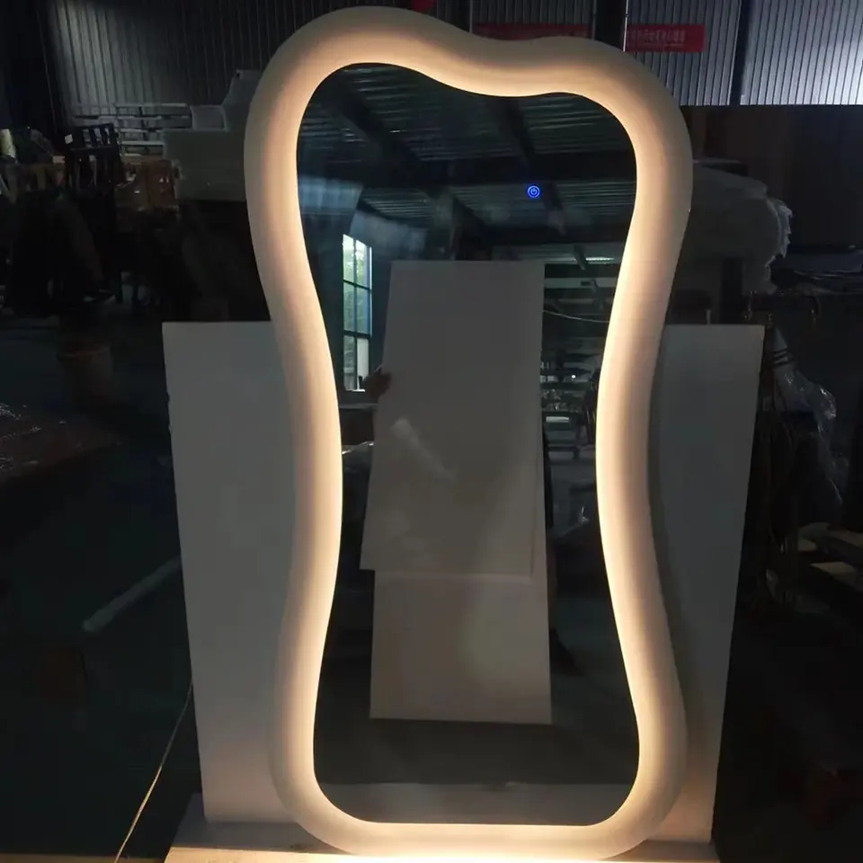 Miroir de sol sur toute la longueur personnalisé, en forme de vague irrégulière, avec éclairage LED, adapté à un usage domestique dans les magasins de vêtements