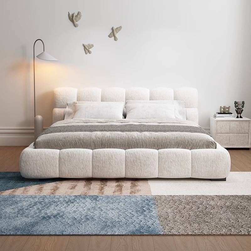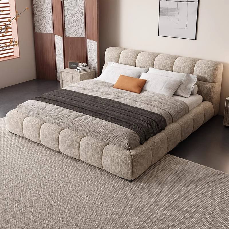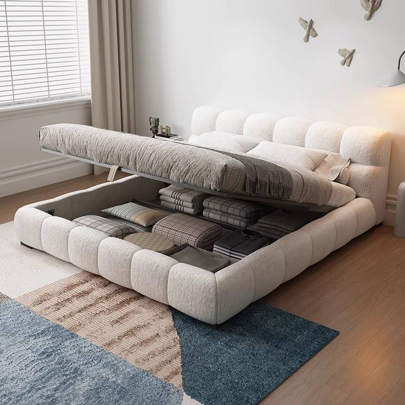 Lit King Size Personnalisé de Style Minimaliste Italien avec Rangement Intégré, Confort Cloud-Touch, Design en Tresse Plissée pour la Maison