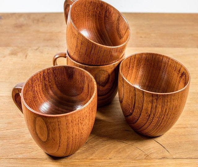 Coupe à saké ronde personnalisée japonaise miniature, faite à la main en hêtre naturel