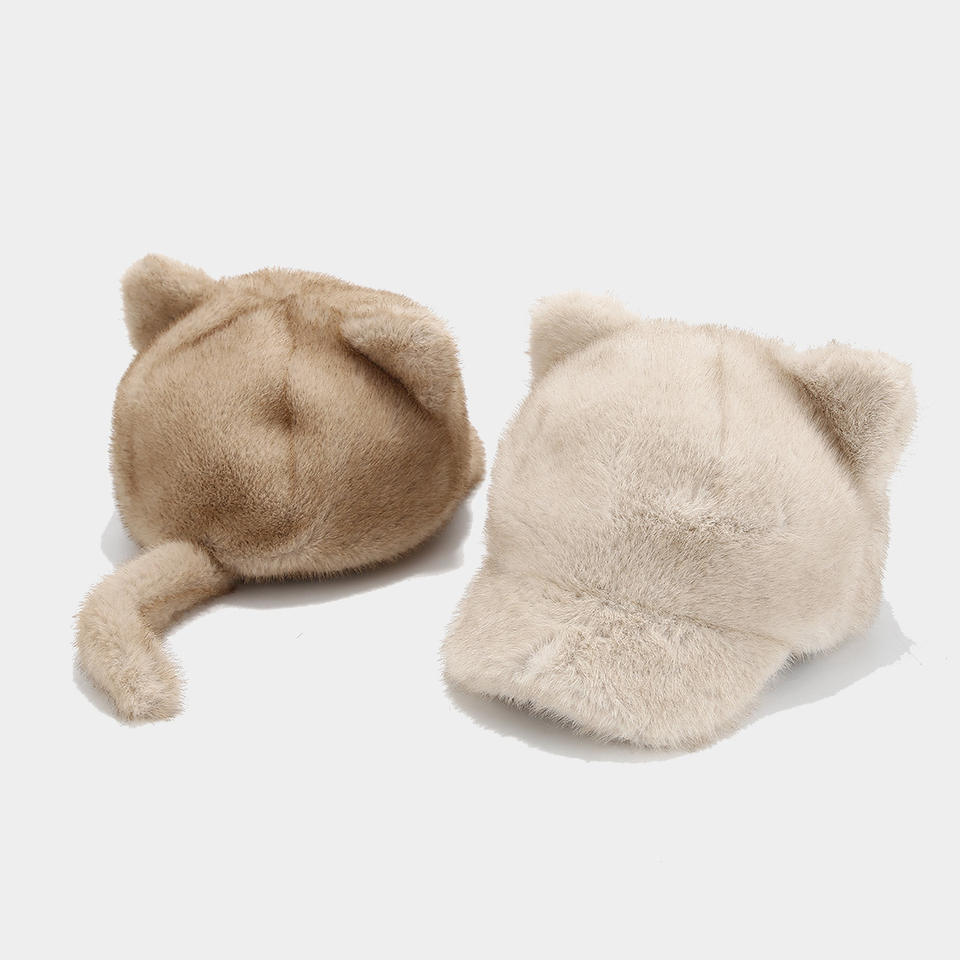 Casquette de baseball personnalisée de style japonais avec queue moelleuse, chapeau mignon à bec de canard, taille unique, en flanelle douce et fraîche