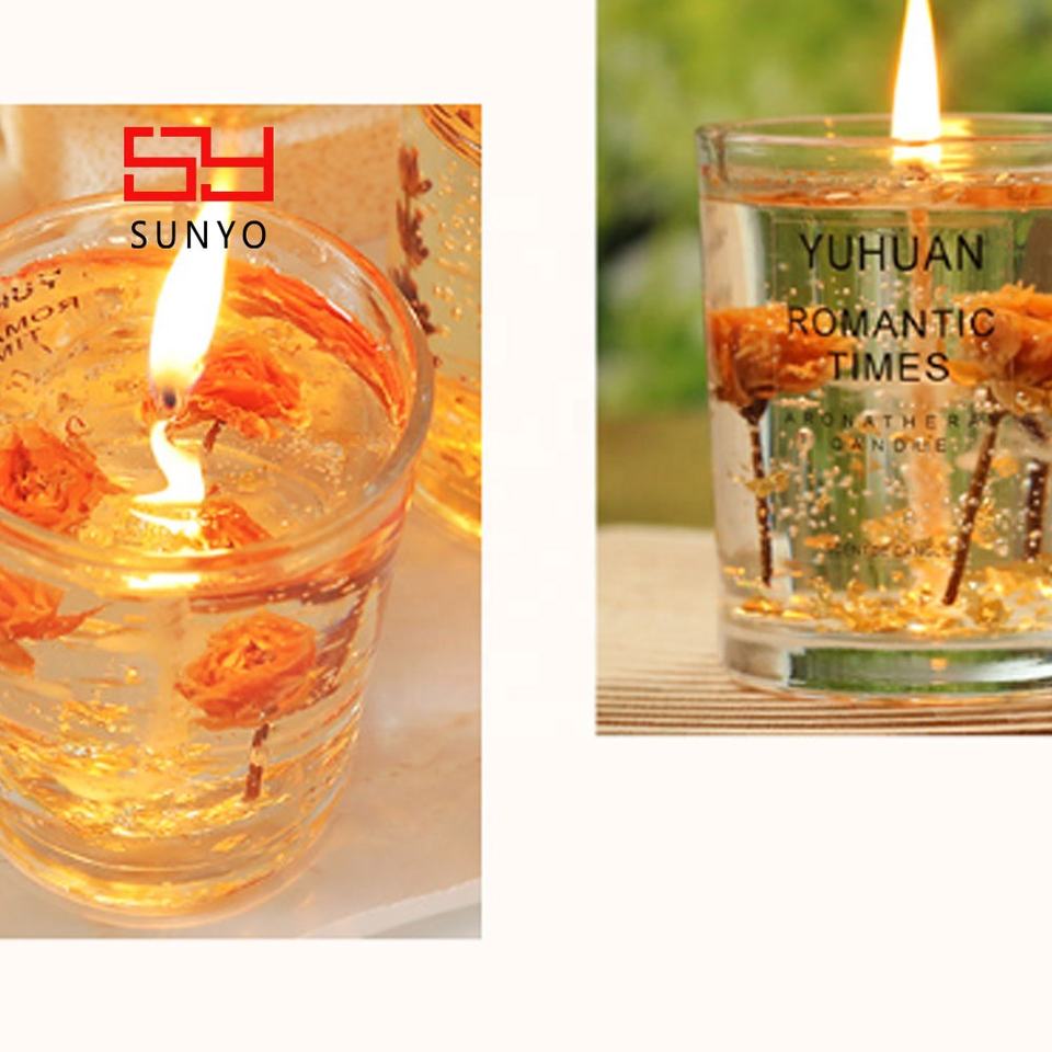 Bougeoirs personnalisés en verre parfumé à la cire de gelée de fleurs séchées Vente en gros Fournisseurs directs Bougeoirs décoratifs