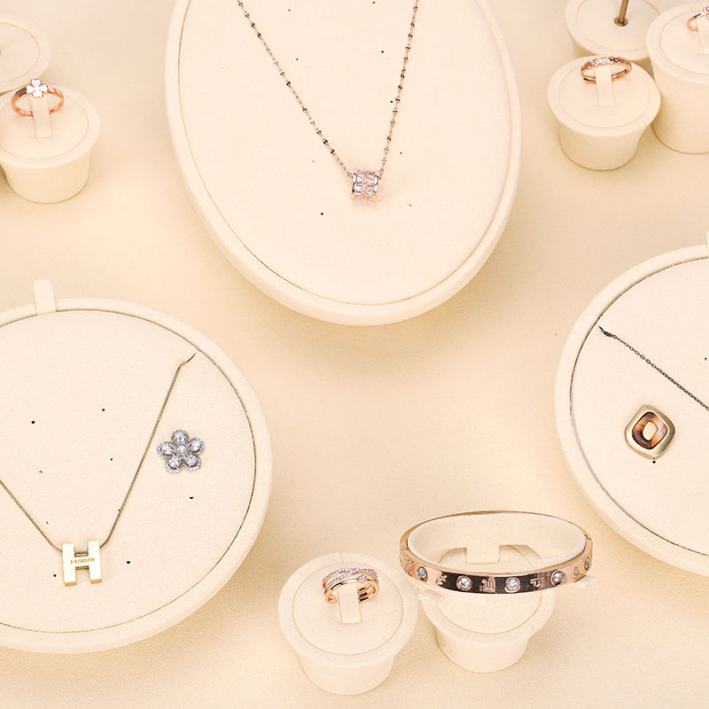 Présentoir de bijoux personnalisé pour comptoir Présentoir de bijoux de luxe Présentoir de colliers en microfibre