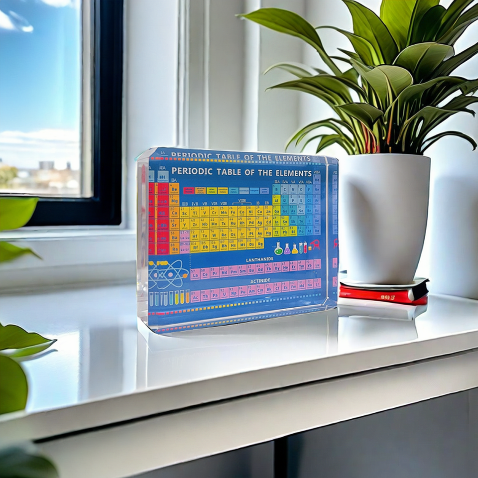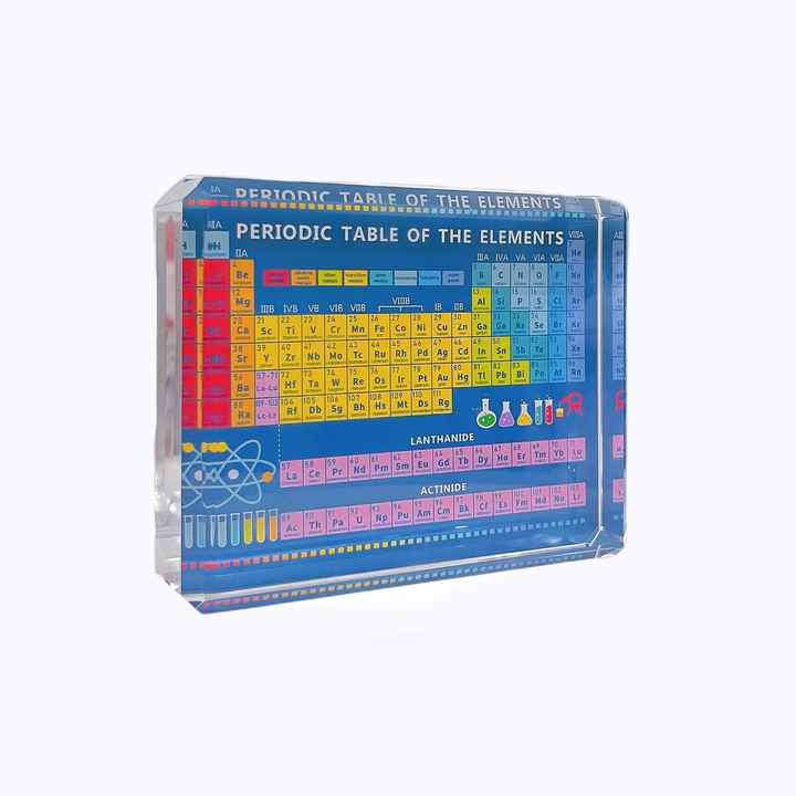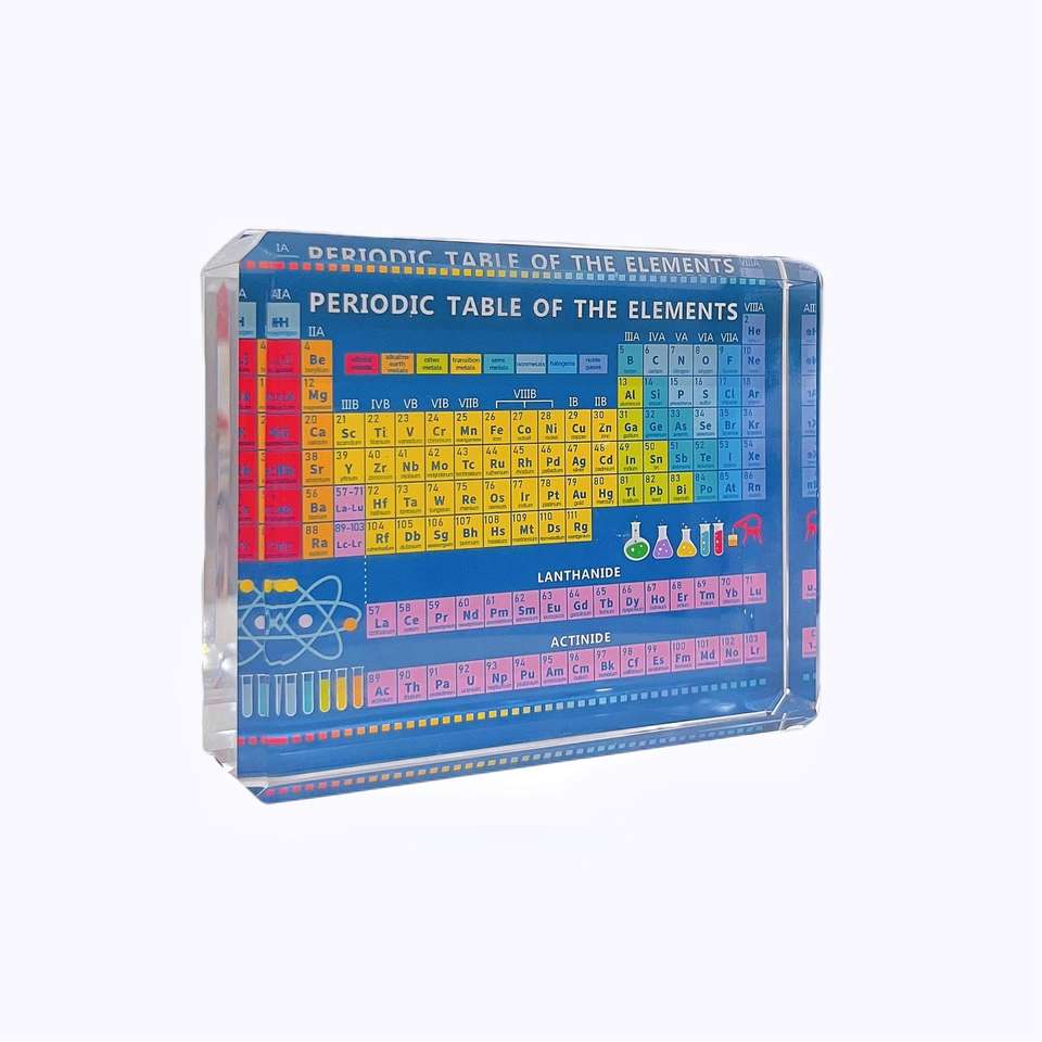 Blocs de cristal K9 personnalisés Cubes de verre Tableau périodique des éléments Décor de table de cycle d'élément chimique avec de vrais éléments à l'intérieur