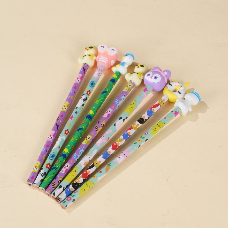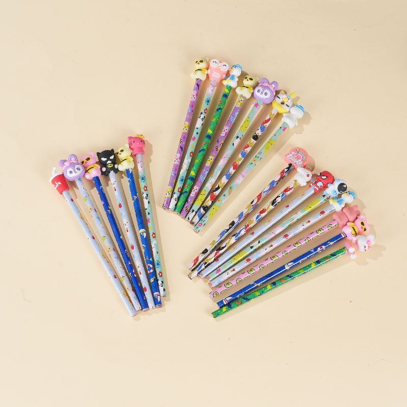 Customized Kawaii Stationery Set for Kids Cute Graphite Pencil with Pencil Topper Eraser Colorful HB Colored Pencils for Drawing