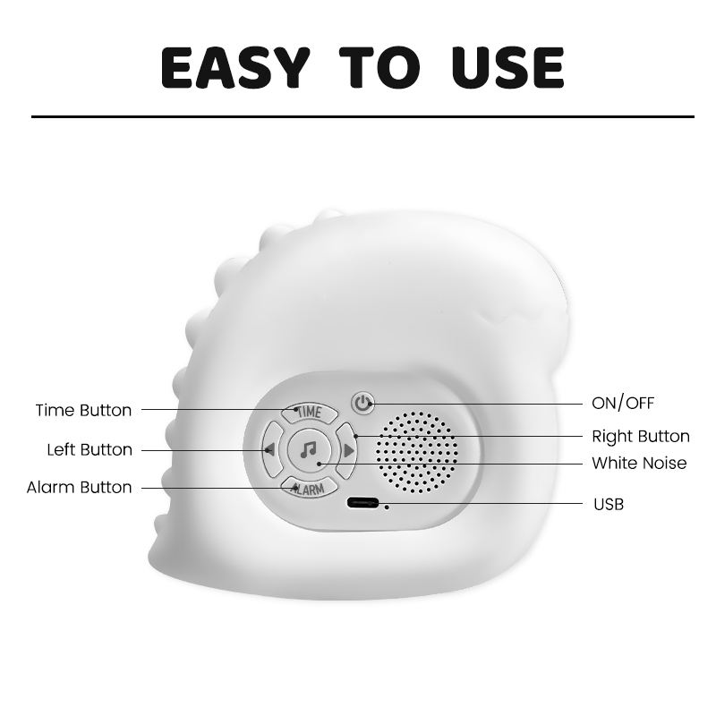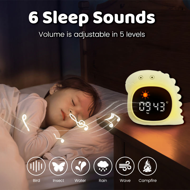 Veilleuse tactile personnalisée pour enfants avec horloge, 6 bruits de bruits blancs, boîte à musique et jouet d'aide au sommeil pour bébé et chambre d'enfant