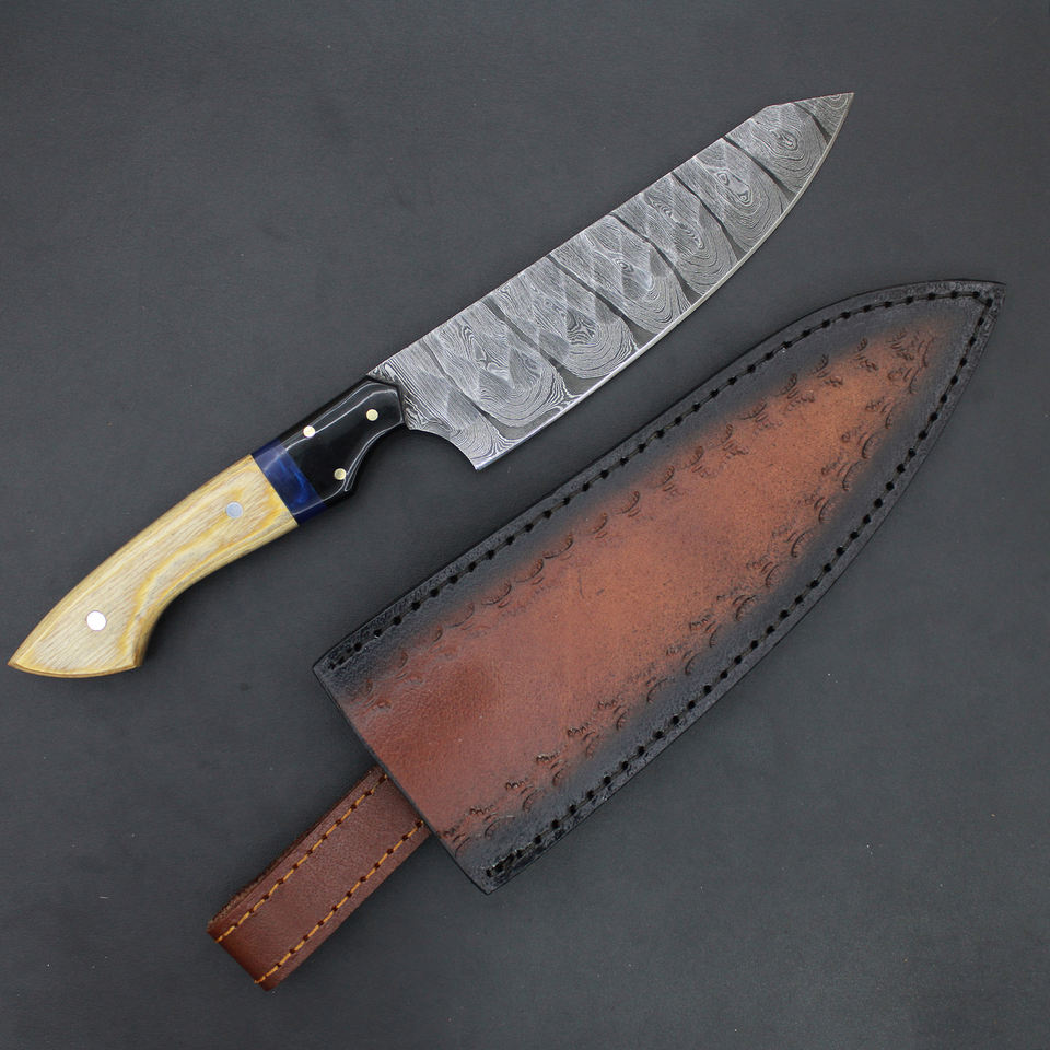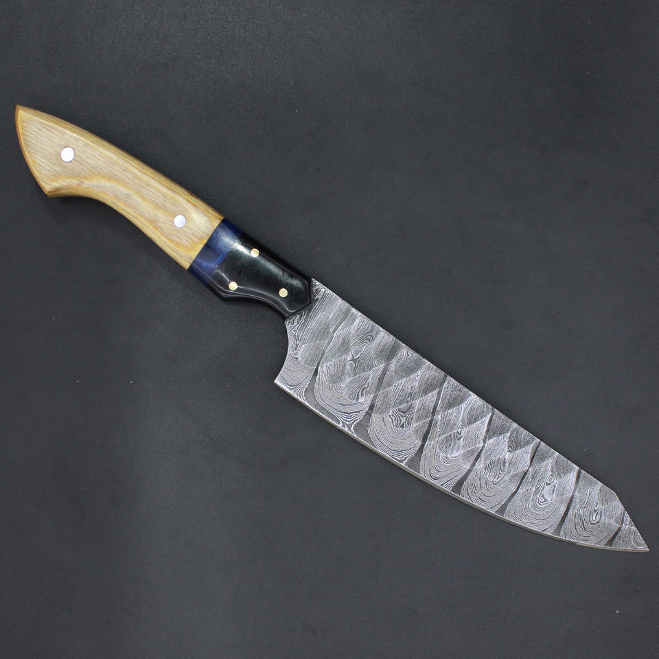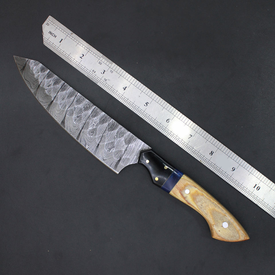Couteau de chef personnalisé, manche en acier, couteaux Damas faits à la main, manche en bois, prix réduit, taille sur mesure.