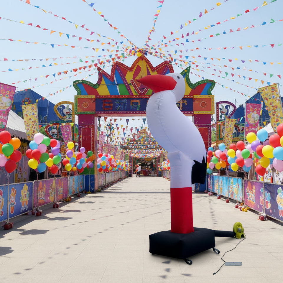 Poupée gonflable en forme d'oiseau avec éclairage LED personnalisé, costume de grue gonflable imprimé pour défilé, soirée, spectacle pour adultes