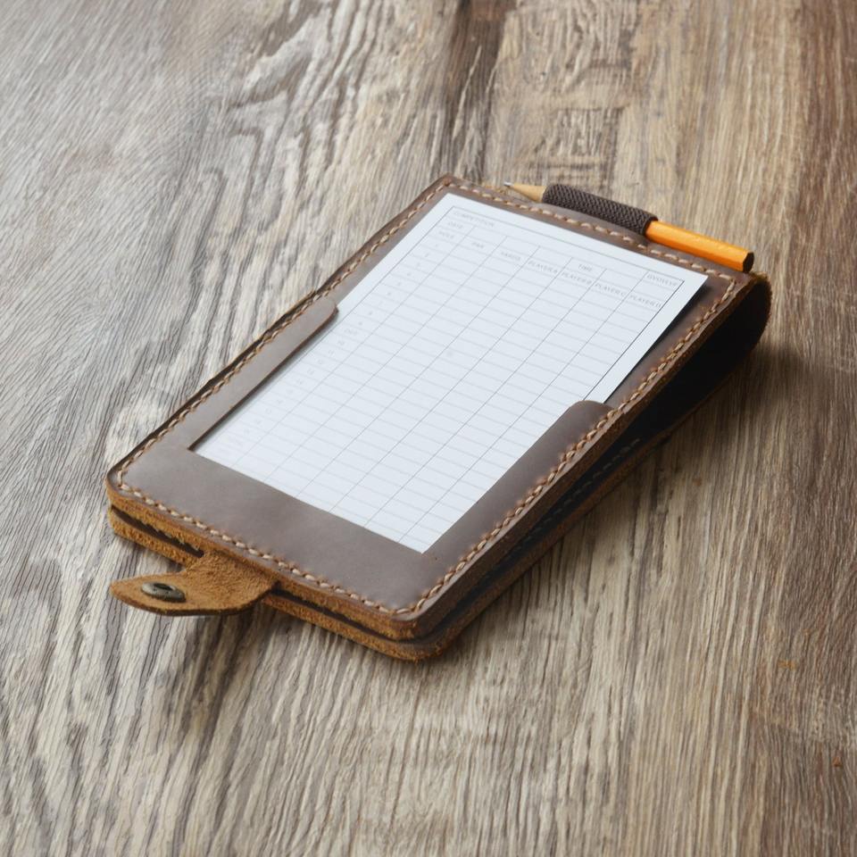 Personnalisé LGSB-0012C Cattlehide Golf Scorecard Yardage Book Holder Cover pour la notation et l'organisation