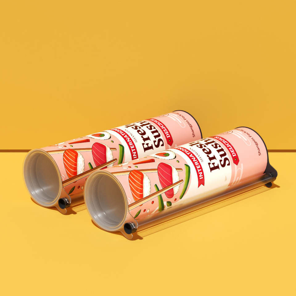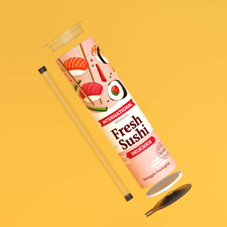 Boîte d'emballage ronde en papier pour sushi, tube en papier de type poussoir pour sushi, de qualité alimentaire, avec logo personnalisé, célèbre sur internet