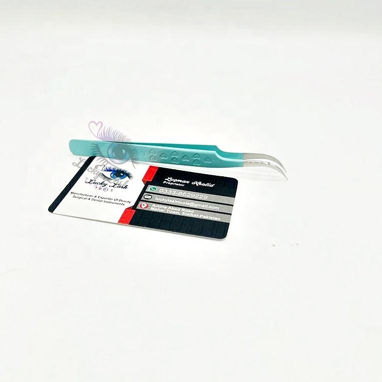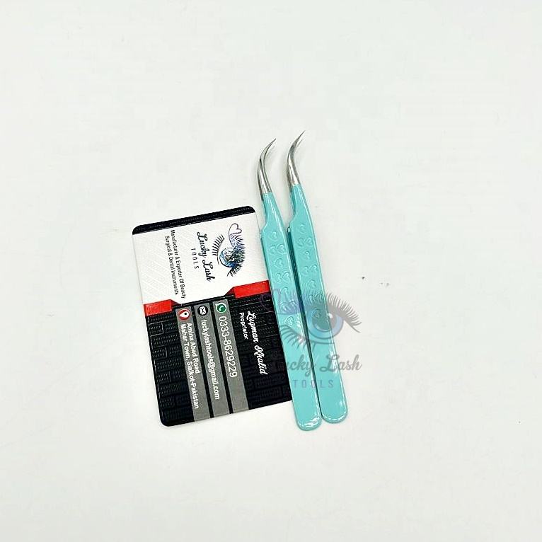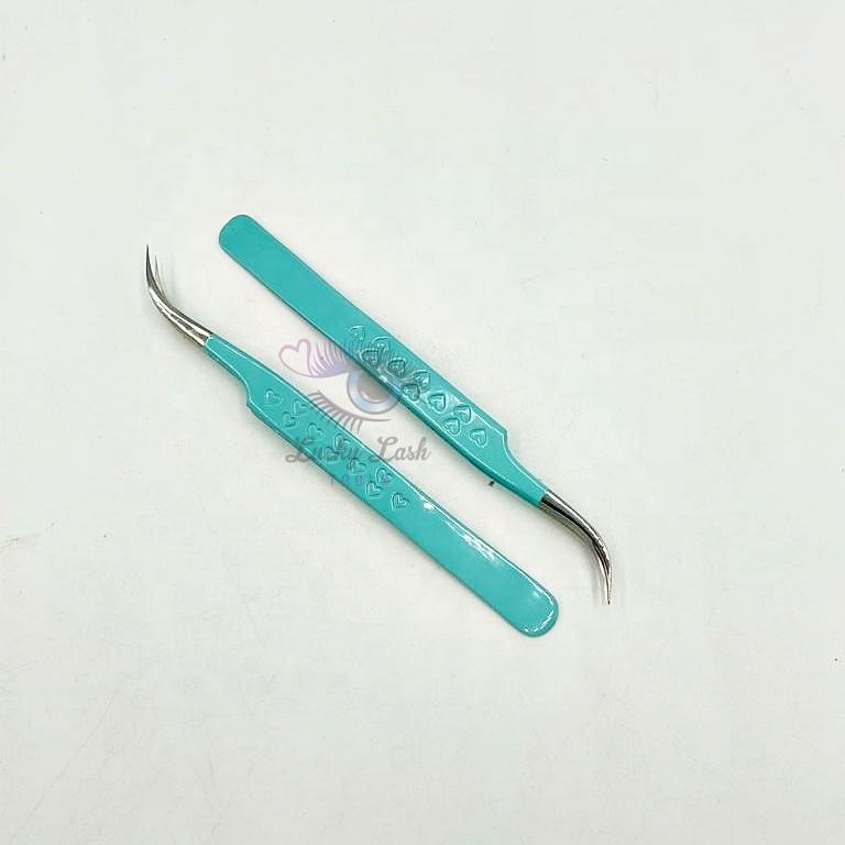 Pince à épiler d'extension de sourcils en acier inoxydable de forme incurvée avec étiquette personnalisée True Grip New Heart-Design Color High Pointed