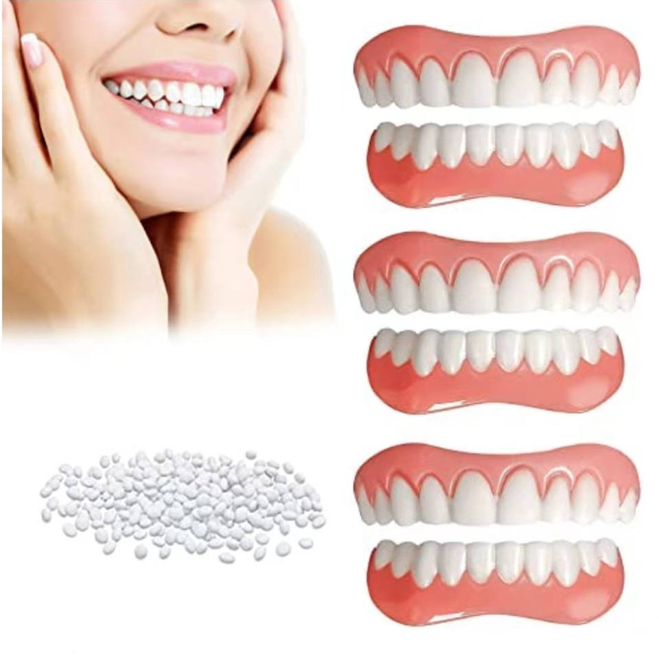 Fausses dents complètes personnalisées, couvrant l'ensemble de la dentition, embellissent le sourire, blanchissent les dents, facettes dentaires, ajustement confortable, prothèse flexible