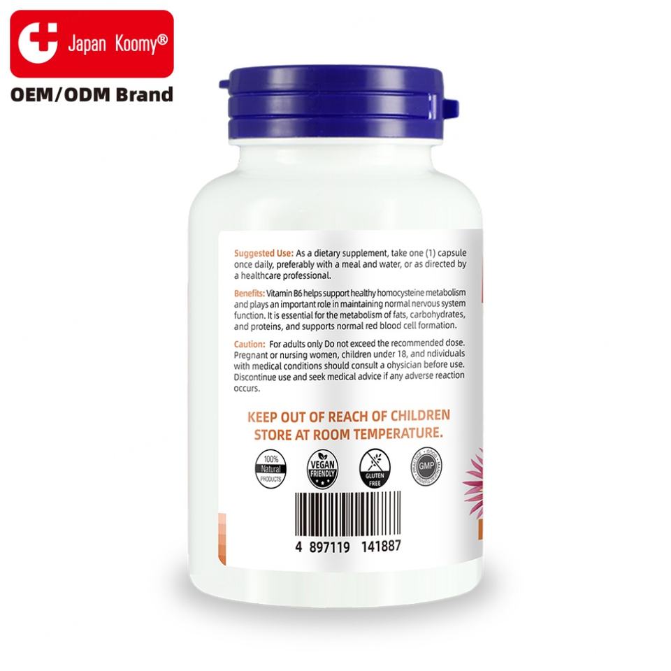 Complément de vitamine B-6 personnalisé avec étiquette personnalisée, 100 mg, soutient la santé cardiovasculaire des adultes, capsules de vitamine B-6