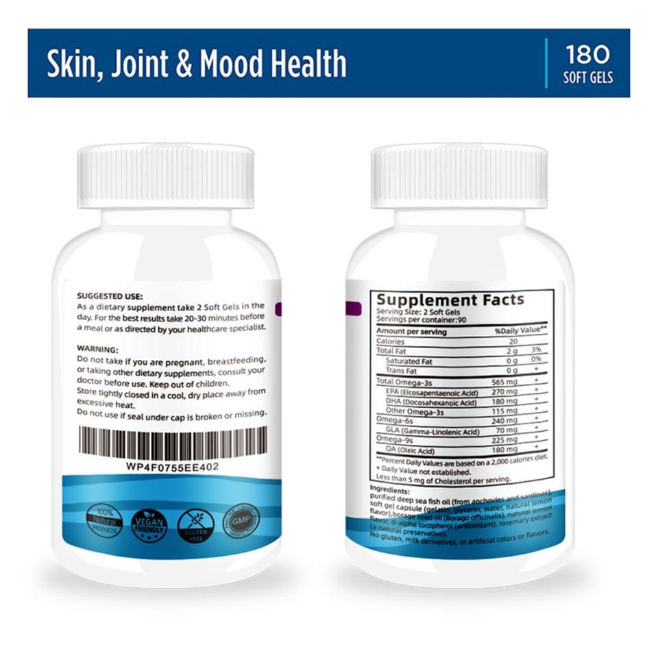 Étiquette personnalisée Omega Softgel Omega-3 pour une peau saine et une cognition positive, 180 gélules, complément d'oméga pour adultes