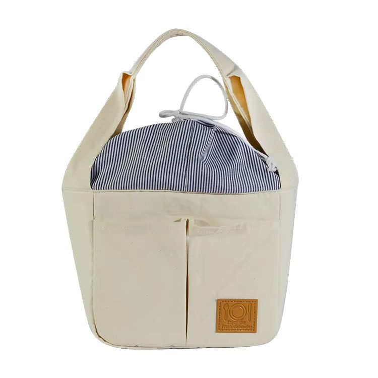 Sac à déjeuner isotherme en toile grande capacité personnalisé 2026, sac fourre-tout de pique-nique de voyage, mini boîte de rangement beige