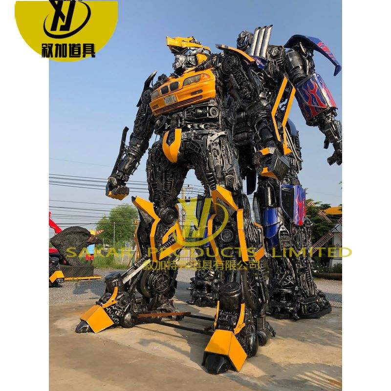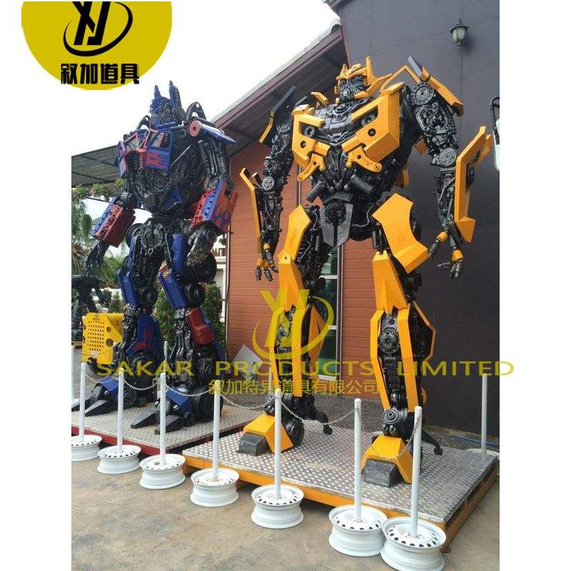 Grand métal personnalisé accessoires d'extérieur rétro voiture film grandeur nature voix Robot Sculpture fer Spider Man transformateurs Statues Logo