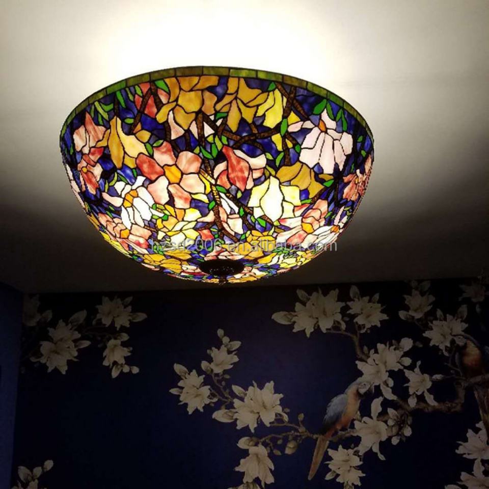 Lampe suspendue de style Tiffany personnalisée de grande taille avec motif de fleur de magnolia pour hall d'hôtel ou éclairage domestique