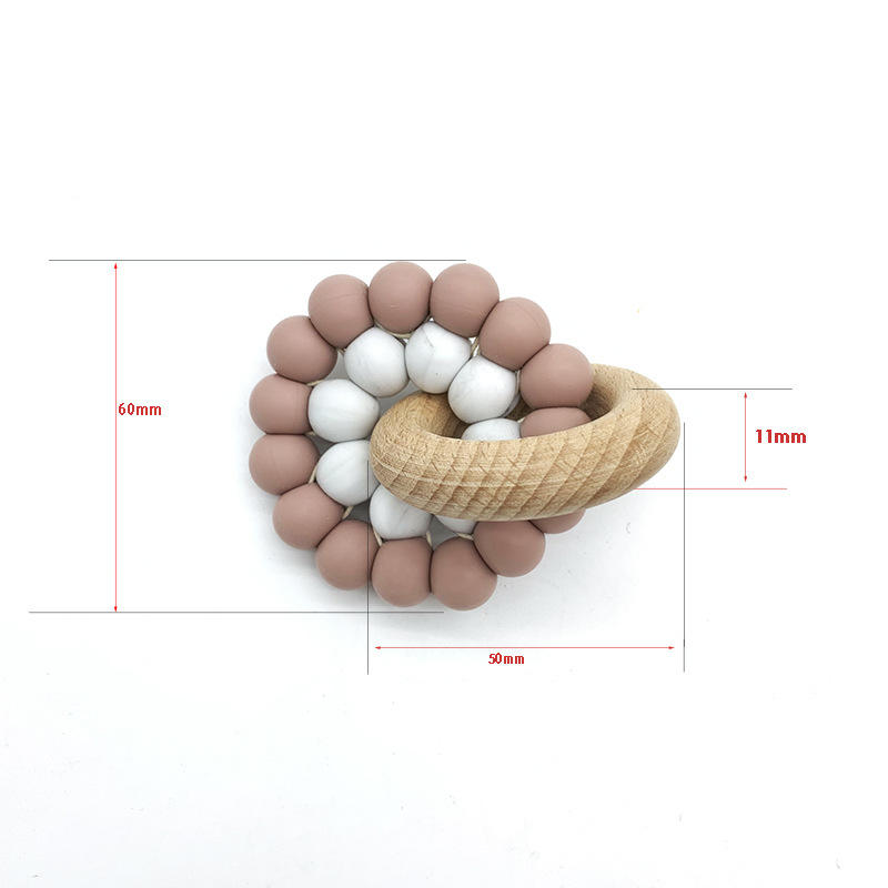 Anneau de dentition en bois de hêtre avec logo laser personnalisé Anneau de dentition en silicone accessoire élégant et durable Perles en forme de goutte Hochet en bois de hêtre Jouet de dentition