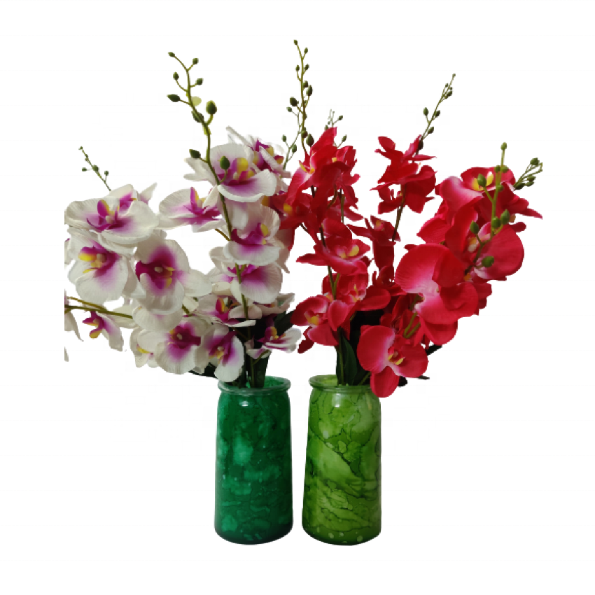 Dernière vente personnalisée chaude cylindrique rouge marbré de haute qualité à la main décoratif pièce maîtresse de table vase à fleurs en verre